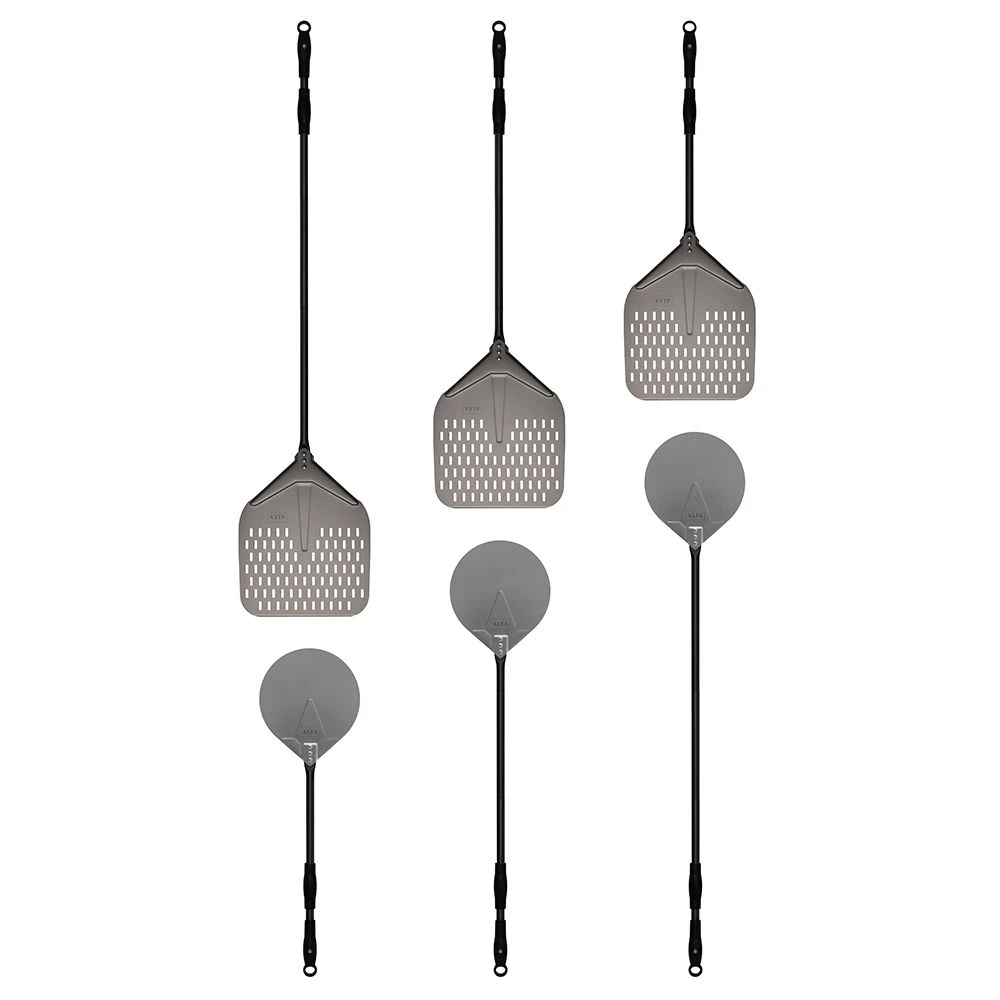 Alfa AC-2PSET24 24-Inch Small Pizza Peel and Turner provides a premium accessory set for use with your Alfa oven. This pizza peel and turner set features aluminum and stainless steel construction for superior durability, while adjustable length tubular handles make it easier to work near hot ovens. Professional non-slip handles provide excellent grip, while the functional design of these tools makes baking more convenient every time you use your oven. These tools are available in either red or black finishes.