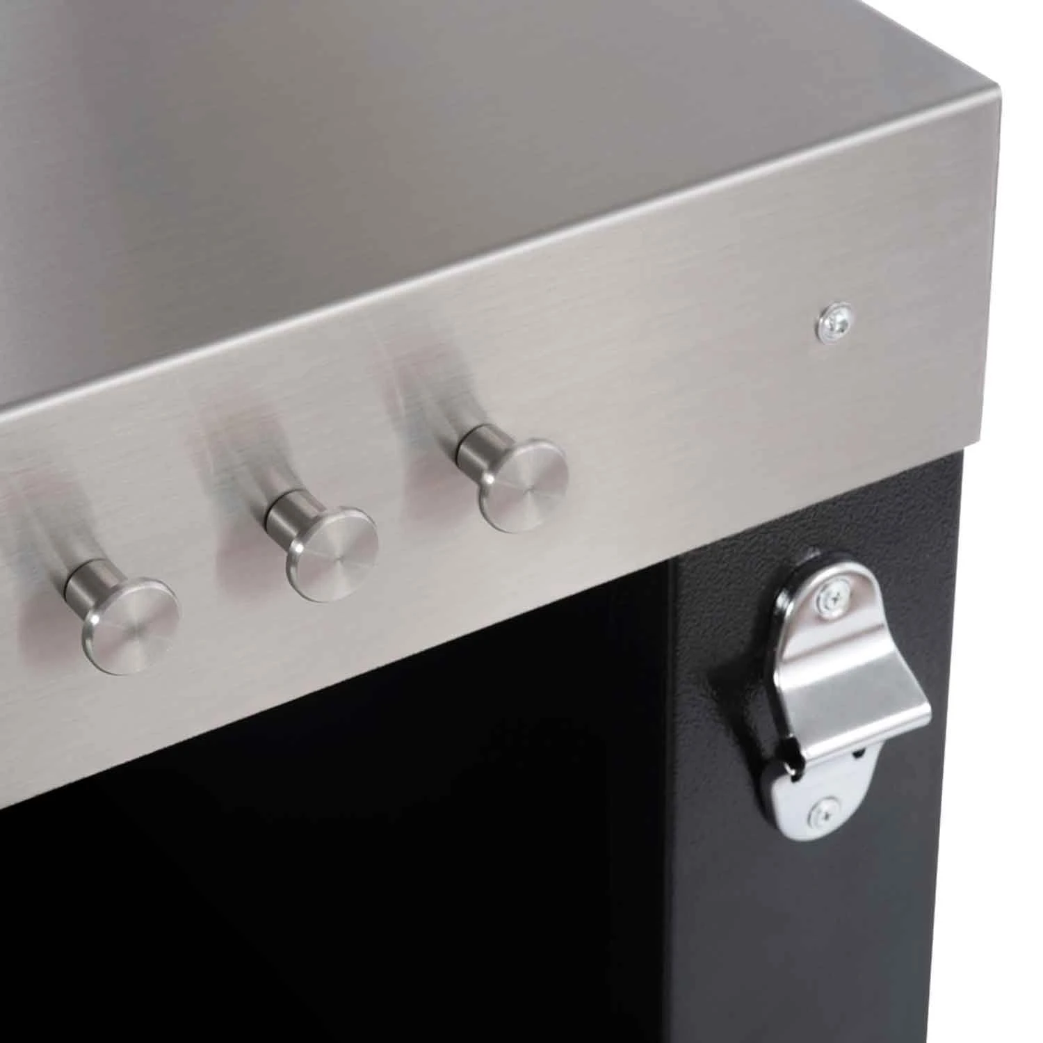 - Includes – Peel holder, bottle opener, (3) stainless steel tool hooks, aluminum cart handle, and (2) wheel brakes