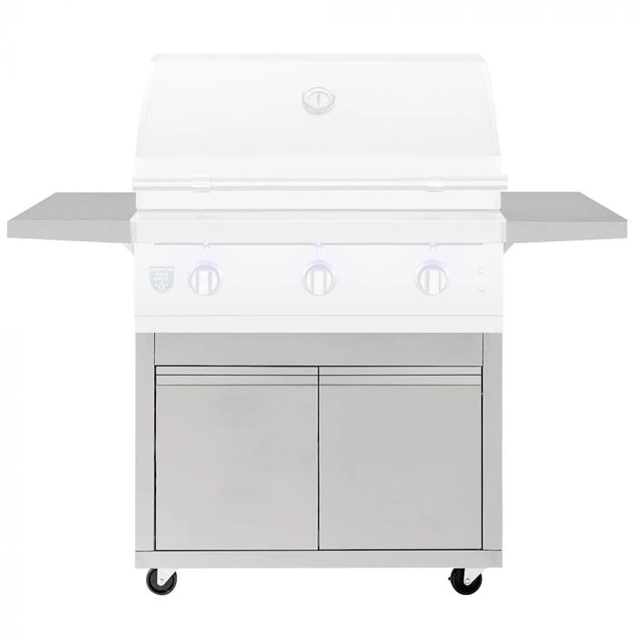 American Made Grills CART-ATLAS36 Freestanding Cart for 36-Inch Atlas Grill provides the necessary grill base for your 36-inch Atlas gas grill. The stainless steel cabinet features heavy duty locking casters, two collapsible side shelves and a double door combo for storage. The LP tank can be stored directly within the cabinet along with any other grilling accessories you need to keep outdoors. Enhance the look of your patio or deck with this premier stainless steel grill base. Designed with utility and longevity in mind, this cart will help make the most of your grilling outdoor space for many years to come.