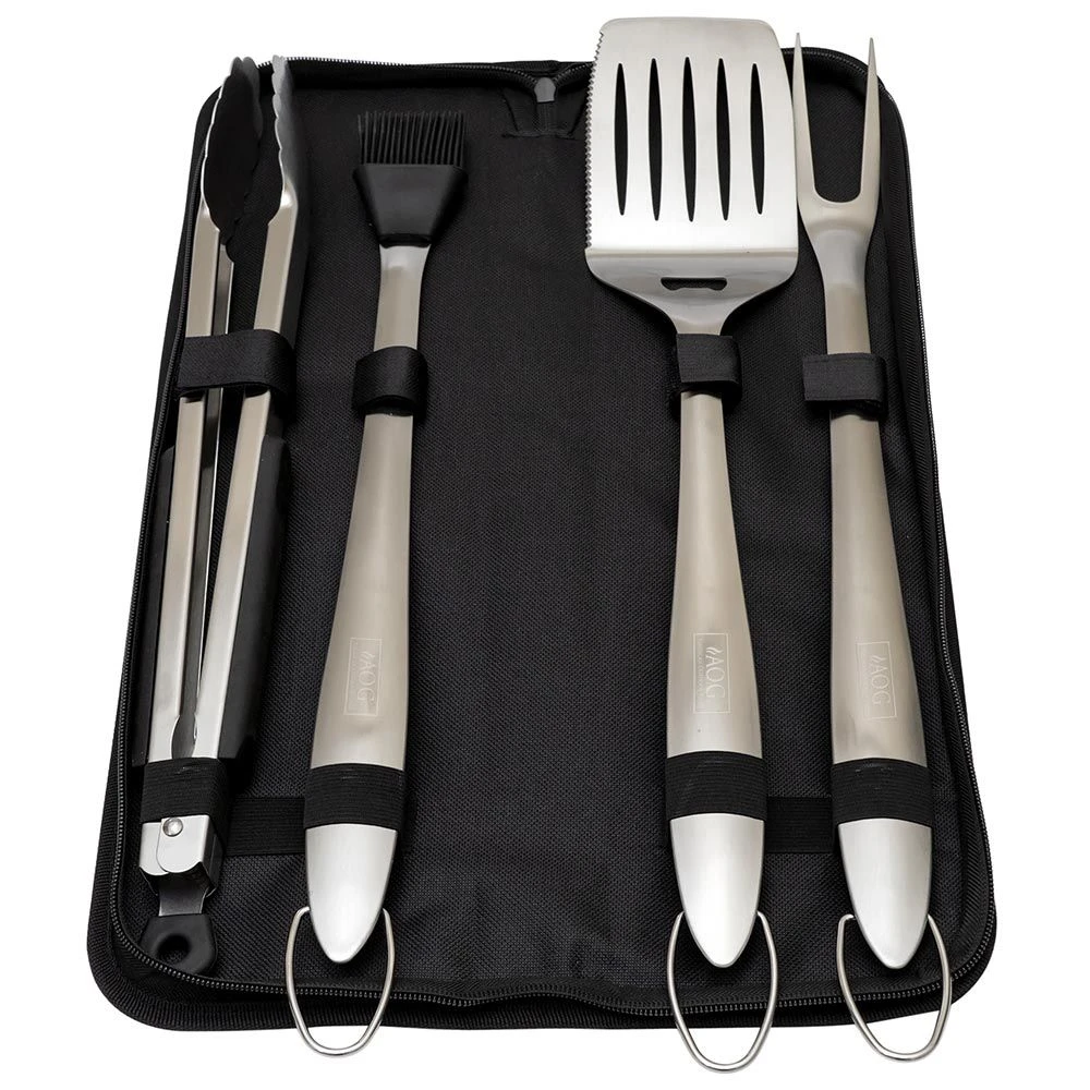American Outdoor Grill TK-1 Stainless Steel Grilling Tool Kit offers all the essential grilling tools in a convenient carrying case. With a two-prong fork, spatula, tongs and basting brush, this kit contains everything you need to have a great grilling experience, and it’s all built from stainless steel to resist corrosion.