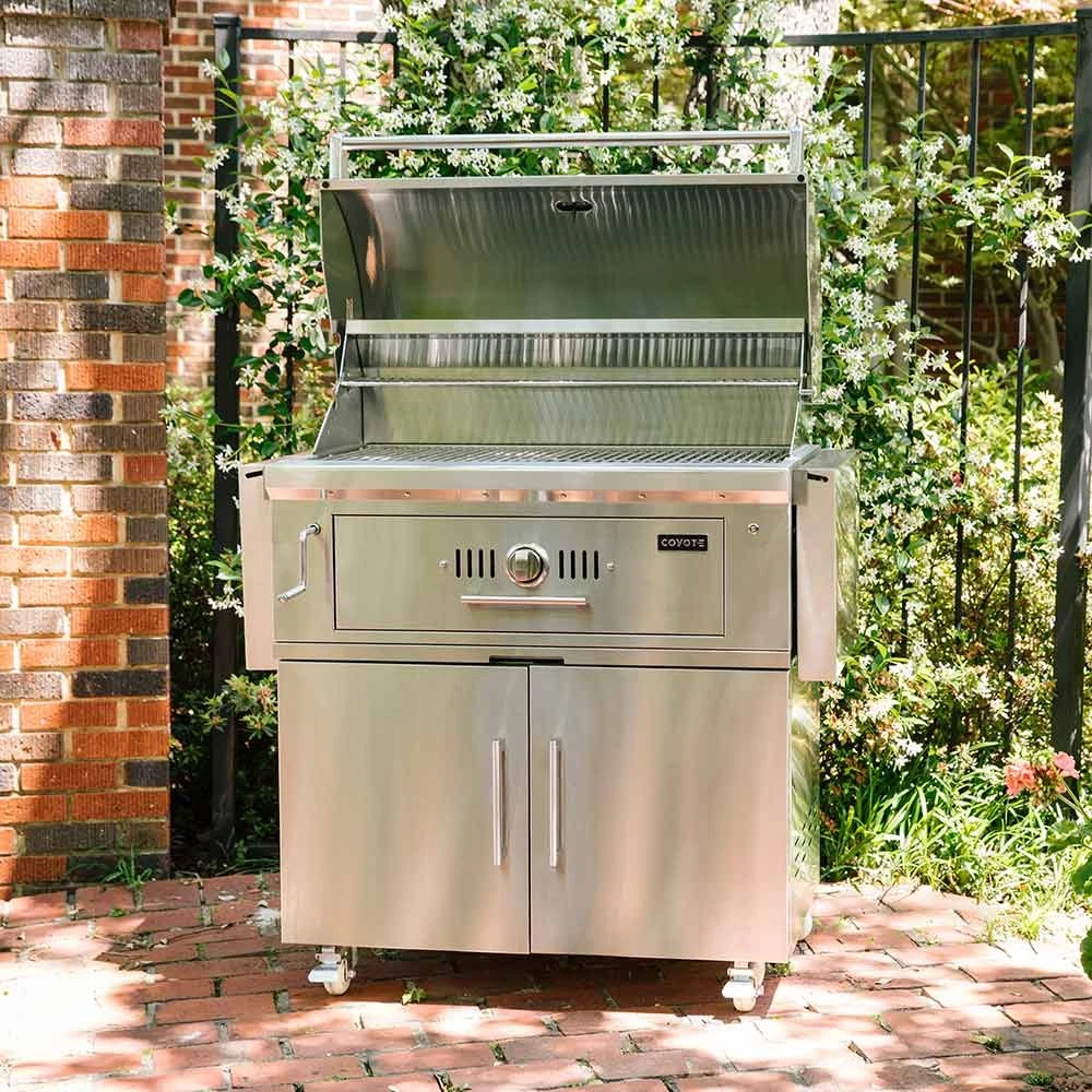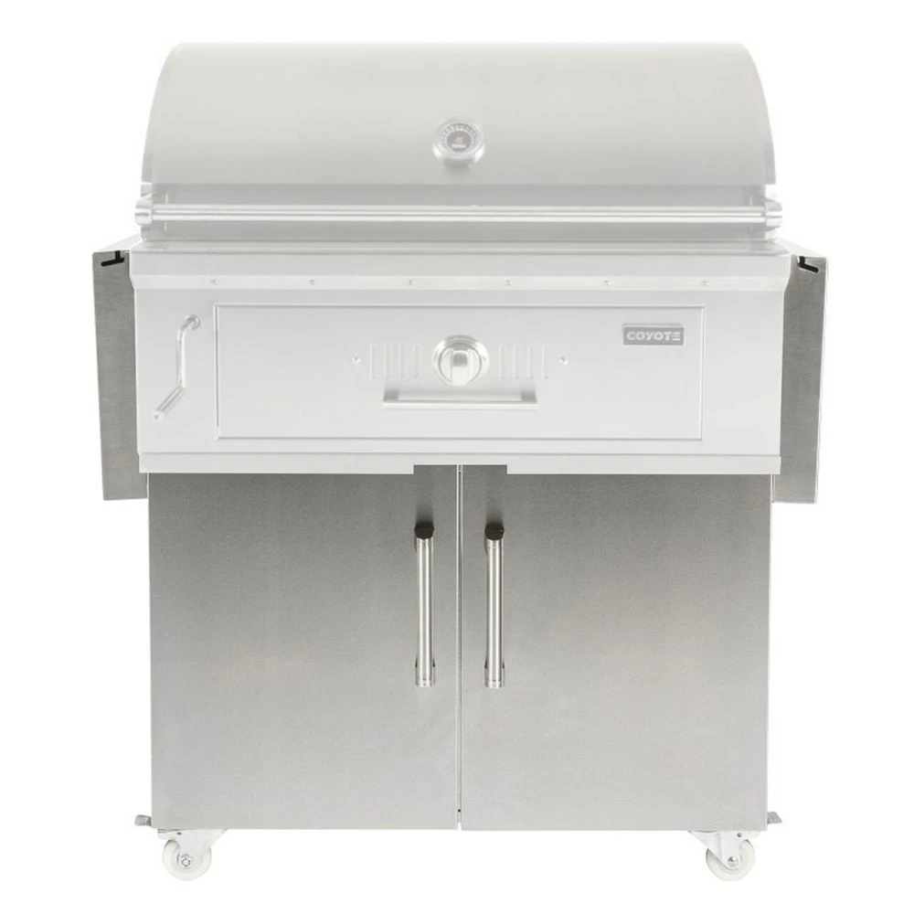 Coyote Stainless Steel Charcoal Grill Cart, 36-Inch (C1CH36CT) provides a premium grill cart to match a Coyote charcoal grill head. This cart features self-closing doors and drawer hinges for a high-end feel. Fold down side shelves offer space when you need it and extra room when you don’t, while industrial-quality locking casters offer easy movement. An interior slide-out shelf offers the perfect space for propane tank storage (if applicable), and the entire cart comes fully assembled for easy installation.