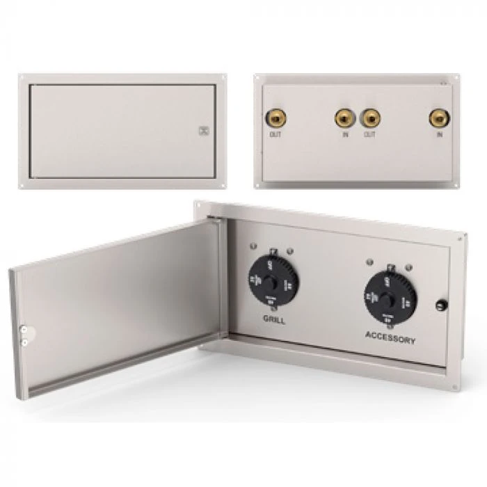 Fire Magic 5520-12T Double Gas Connection Box with Quick Disconnect & 1-Hour Timer provides a high quality safety solution for any gas appliance. The manual shut-off timer connects directly into the gas line in order to provide automatic control of the appliance connected at the end of the gas lines. The manual rotary timer can be set for up to one hour and mechanically counts down until shutting off the gas. The 304 stainless steel control box provides a heavy duty weather-resistant cover to protect the connections.