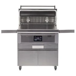 Memphis Grills VG0001S-ITC3 Pro ITC3 Freestanding Wood Fire Pellet Smoker Grill, Wi-Fi Controlled, 304 SS Alloy combines high quality construction and innovative features to create one of the most advanced pellet smokers on the market. An upgrade of the original Pro model, this pellet grill features new IntelliBurn technology, which uses a secondary combustion system to create more heat while using less fuel, giving you more mileage for your money. The heavy duty stainless steel construction ensures a long lasting and durable product, while the 8mm stainless steel cooking grates create a non-stick cooking surface that’s perfect for smoking and grilling alike. The dual wall firebox and oven quality gasket create a tight seal to provide a well-insulated cooking area while the 18-pound hopper capacity allows for up to 62 hours of uninterrupted cooking time. The 568-square-inch cooking area (up to 840 with optional grates) can be heated from 180°F to 650°F all controlled through the integrated Wi-Fi controller and the free Memphis Mobile App available for both iOS and Android, the corresponding ITC temperature probe offers the ability to closely monitor the internal temperature of your food for professional style results.