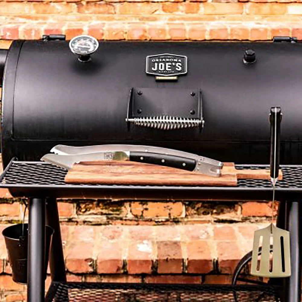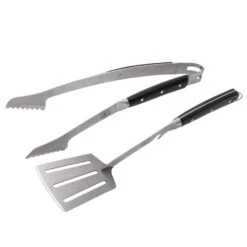 Oklahoma Joe’s OKJ-7826131R06 Blacksmith 2-Piece Tong & Spatula Tool Set provides a convenient tool set to use with your grill. Featuring heavy-duty construction with a full-tang design, these tools are built to last. In addition, the vertical neck and riveted handle design offer superior strength, while the spatula features a no-bend guarantee.