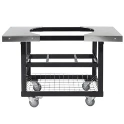 Primo Cart with Stainless Steel Side Shelves for Oval JR 200 is a perfect option to secure and showcase your Primo grill–and great for saving space too. The heavy duty stainless steel construction features a powdered coated frame for long lasting durability, and the grill basket adds extra storage for charcoal and tools. The high quality casters allow effortless movement and lock to stay in place. The additional stainless steel side shelves and turn your cart into a fully functional grill island – great for your outdoor BBQs.