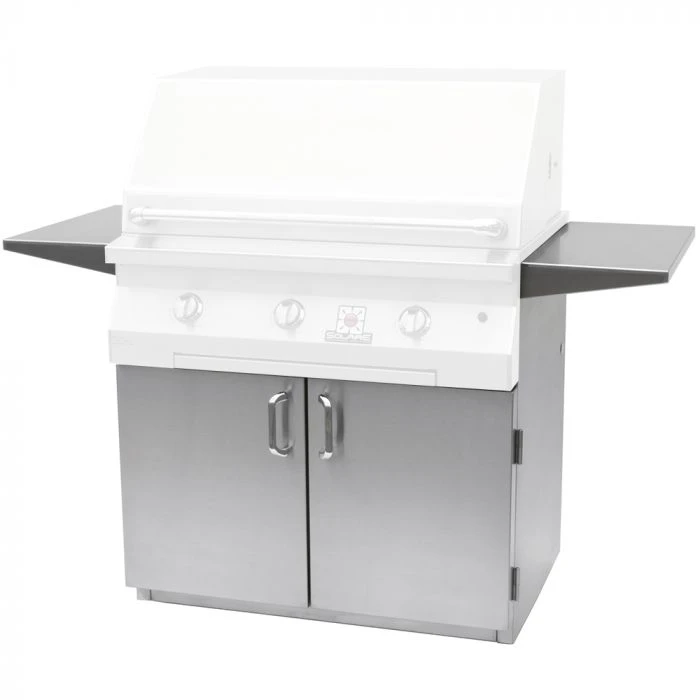 Solaire SOL-IR-36C 2-Door Standard 36-Inch Grill Cart offers a purpose-built base for your Solaire grill, built from high-quality and durable 304 stainless steel for lasting utility. The cart features smart hidden casters to make it easy to move and fold-down shelves for convenient space to prep while you work.