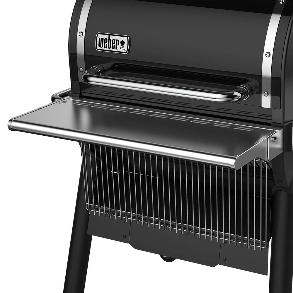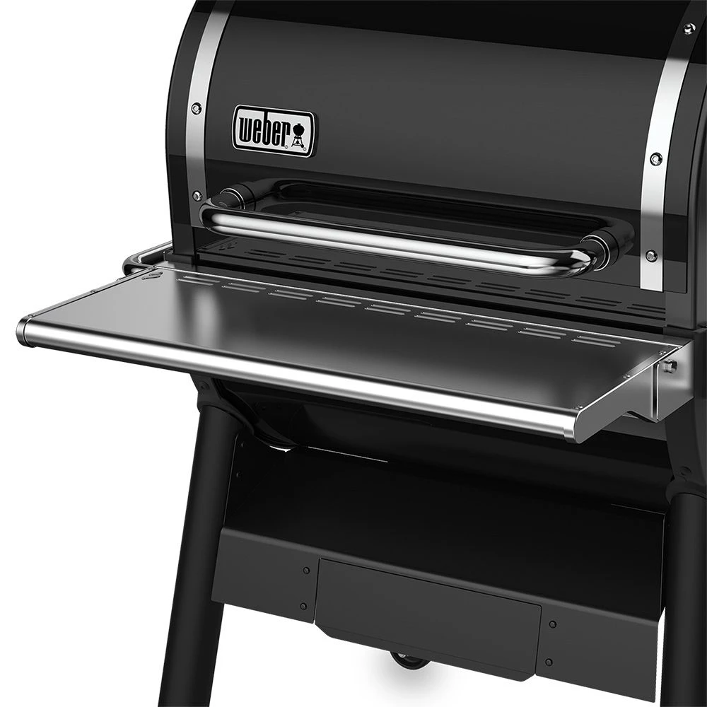 Weber Stainless Steel Folding Front Shelf for SmokeFire EX4 Grill (WEB-7002) offers a smart prep space solution to take your Weber SmokeFire Pellet Grill to the next level. Adding over 250 square inches of work area, this collapsible shelf is an excellent option for getting the most out of your grilling experience.